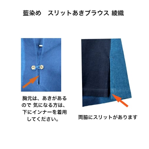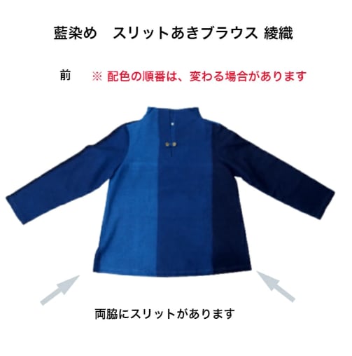 藍染め スリットあきブラウス M/L/LL